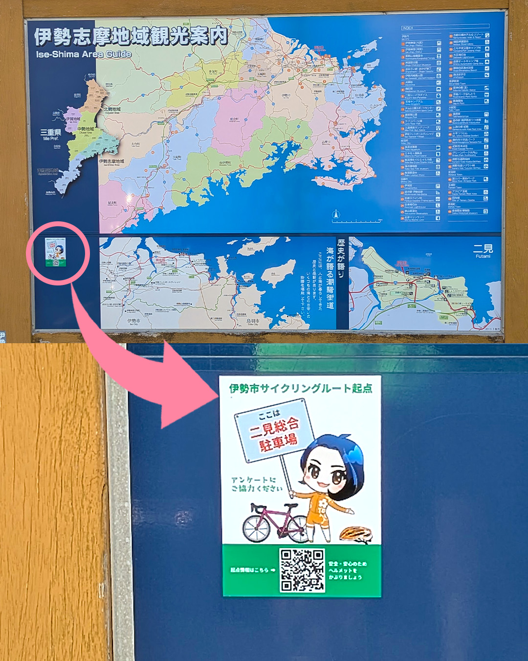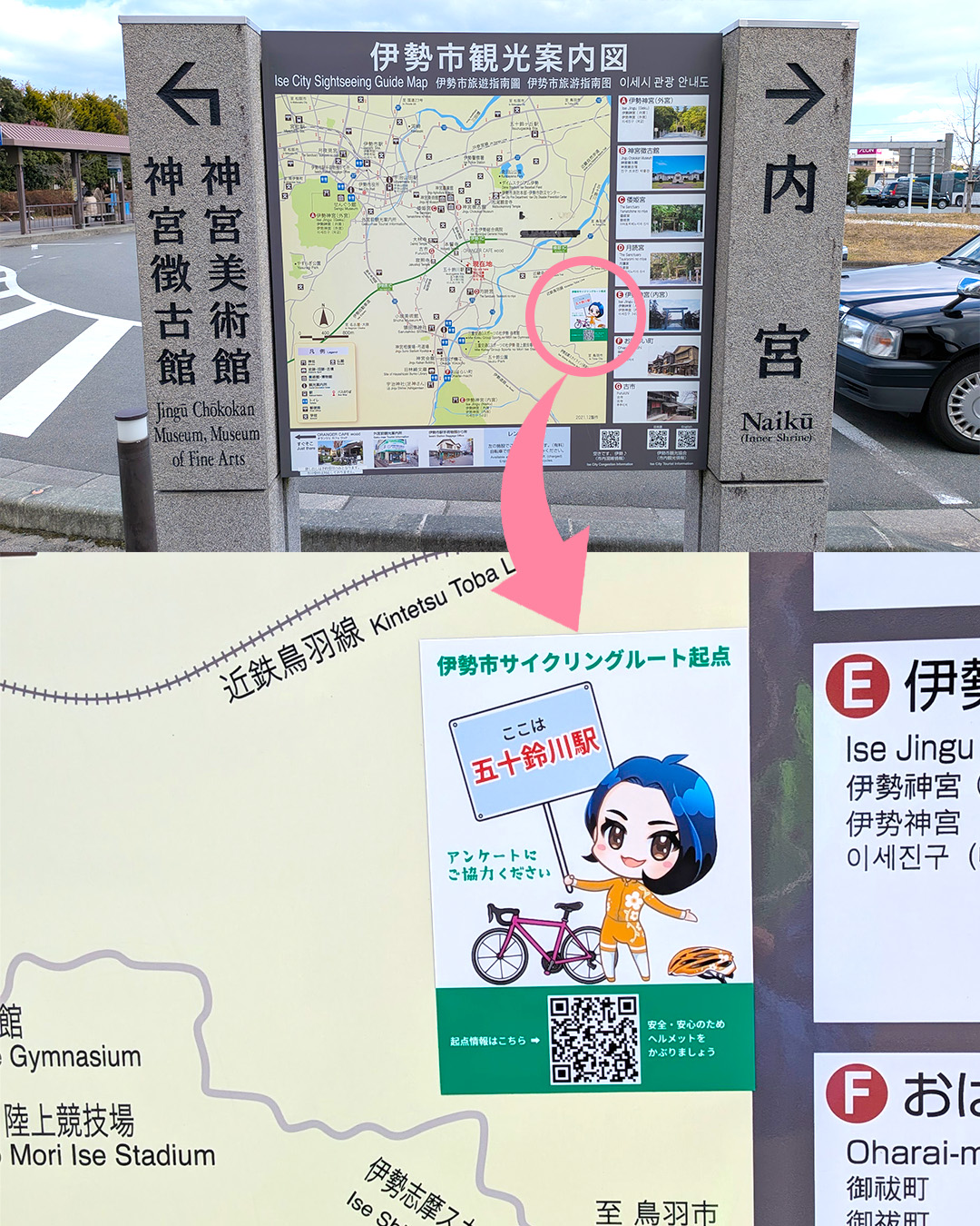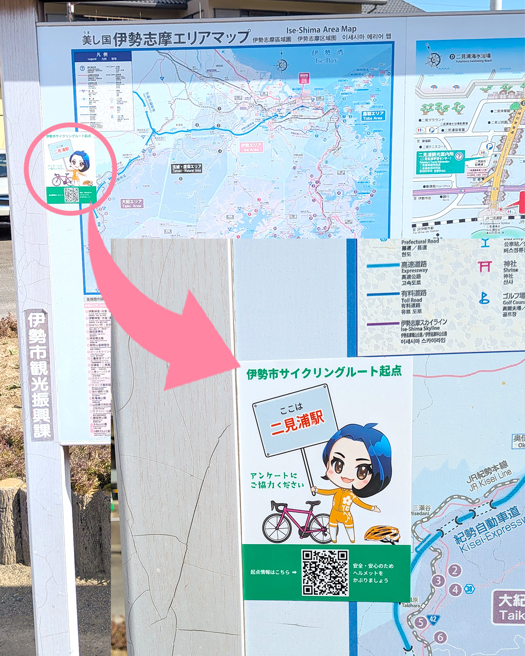 伊勢市に自転車でご訪問の際は、二次元コードを読み取って、起点情報ページからアンケートにご協力をよろしくお願いします!